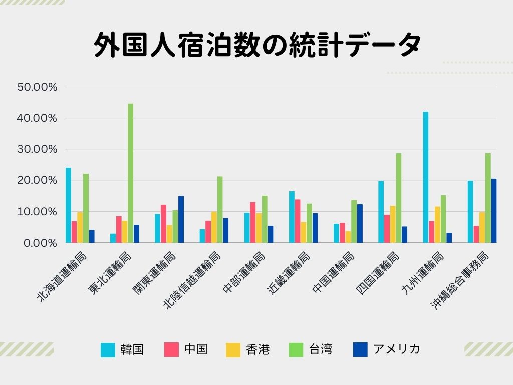 2月29日に「国土交通省観光庁:宿泊旅行統計調査」が発表した2023年の宿泊データからもわかるように、台湾人観光客は、他国からの観光客に比べて地方の観光地を好むことが分かります。他国からの観光客よりも特に滞在時間が長い地域は、東北、四国、北陸信越です。