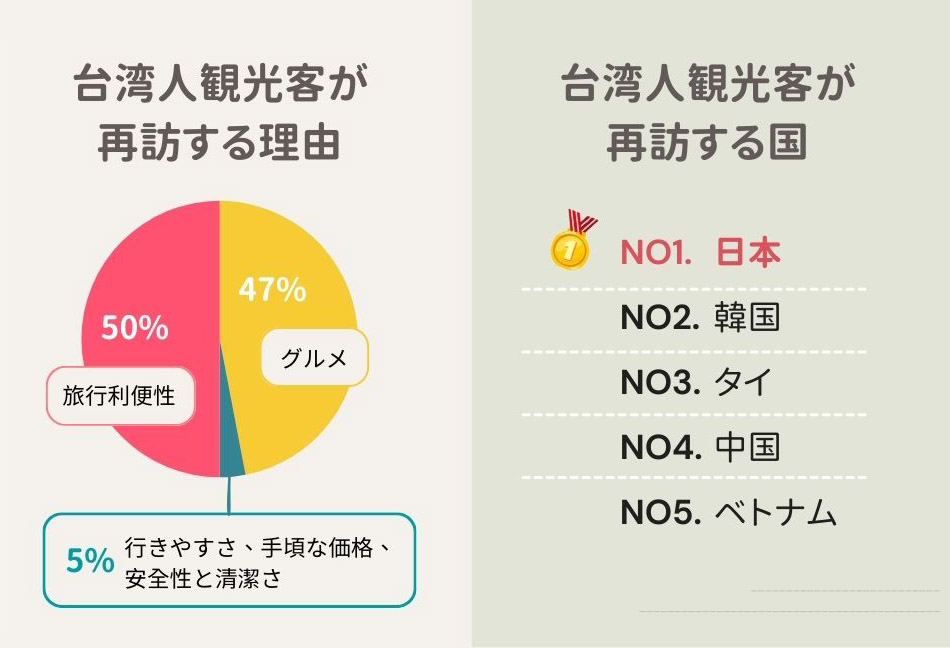 Agodaの調査によると、台湾人観光客の約87%が観光地を再訪していることが分かります。