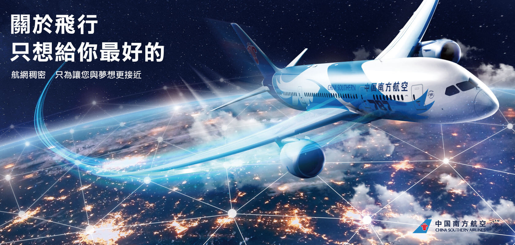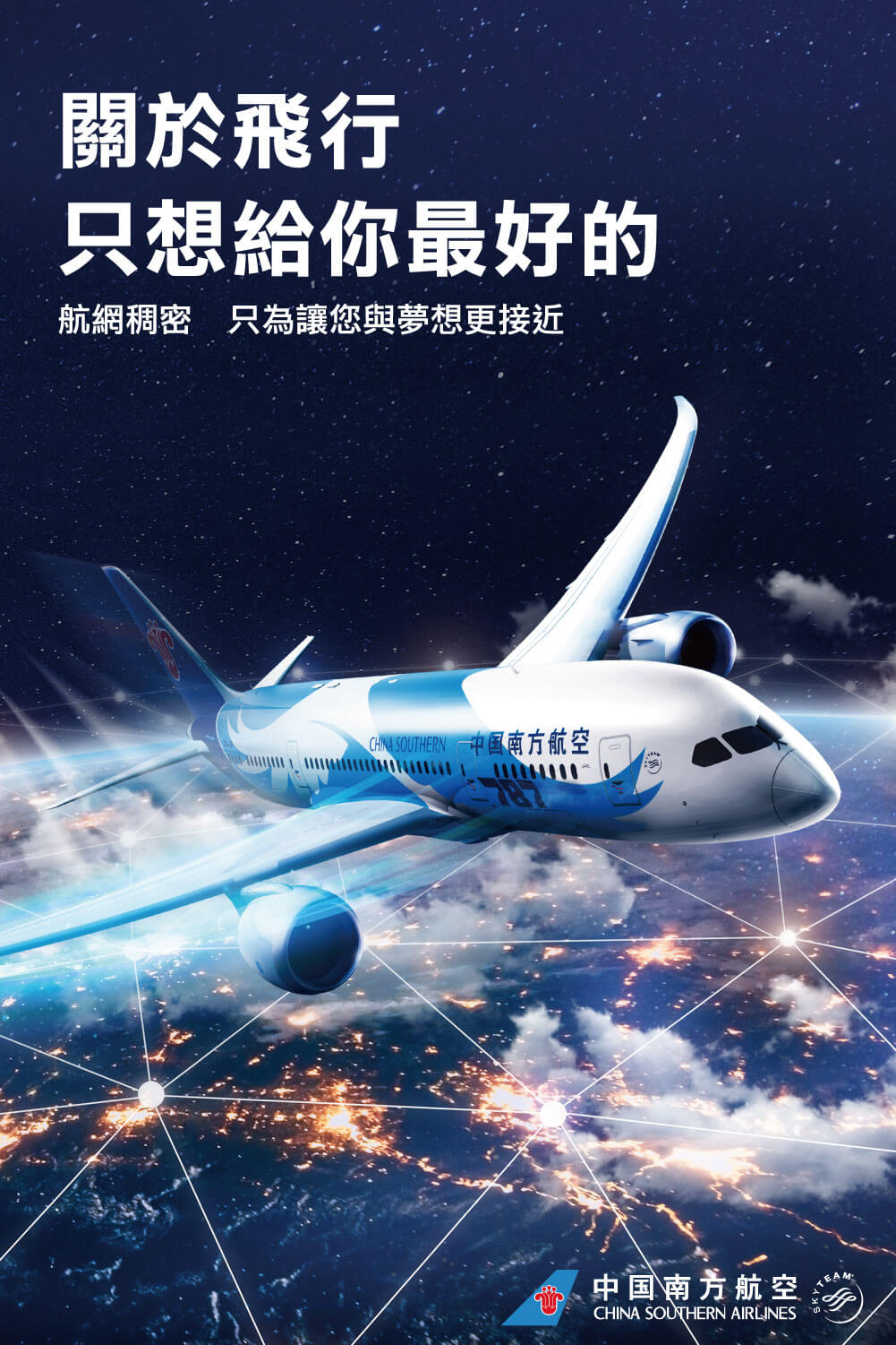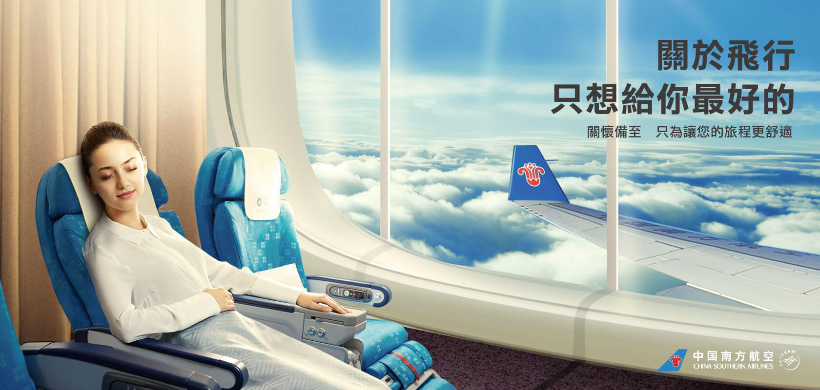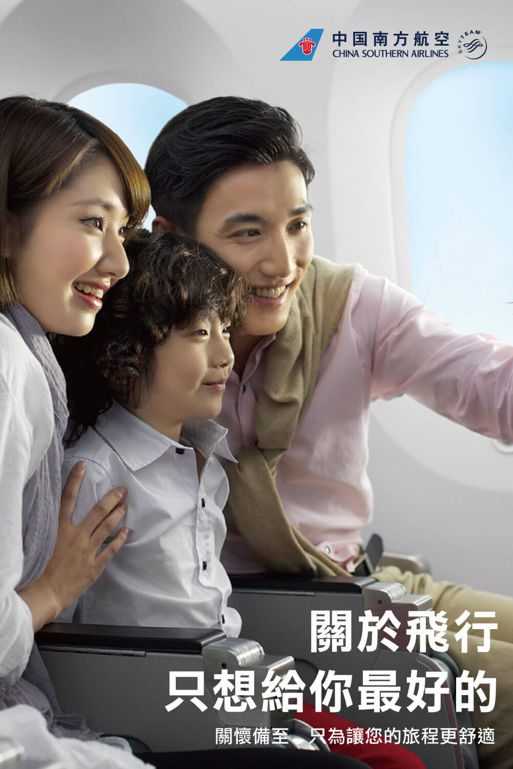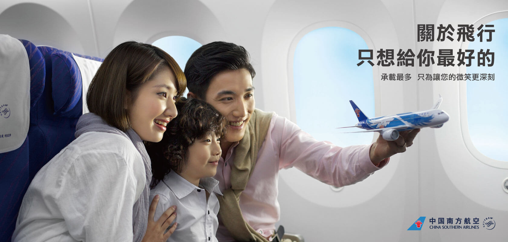 向消費者傳遞中國南方航空品牌訴求-「最好的服務」、「最大乘載量」、「最多機隊及航線」。