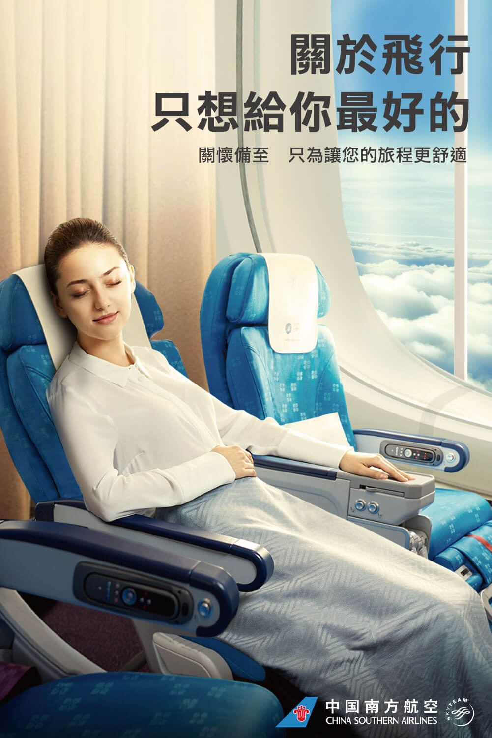 製作台北捷運窗戶廣告,讓坐在座位上的旅客,了解中國南方航空擁有舒適的座椅及空間,利用反差方式提升記憶點;
